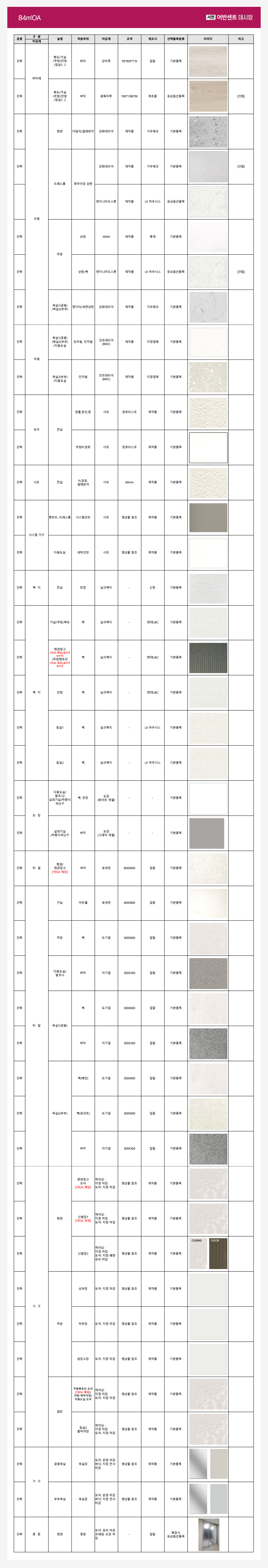 마감재 리스트는 제작과정상 오탈자가 있을 수 있으며, 자세한 사항은 견본주택에 직접 방문하셔서 상담 및 확인하시기 바랍니다.