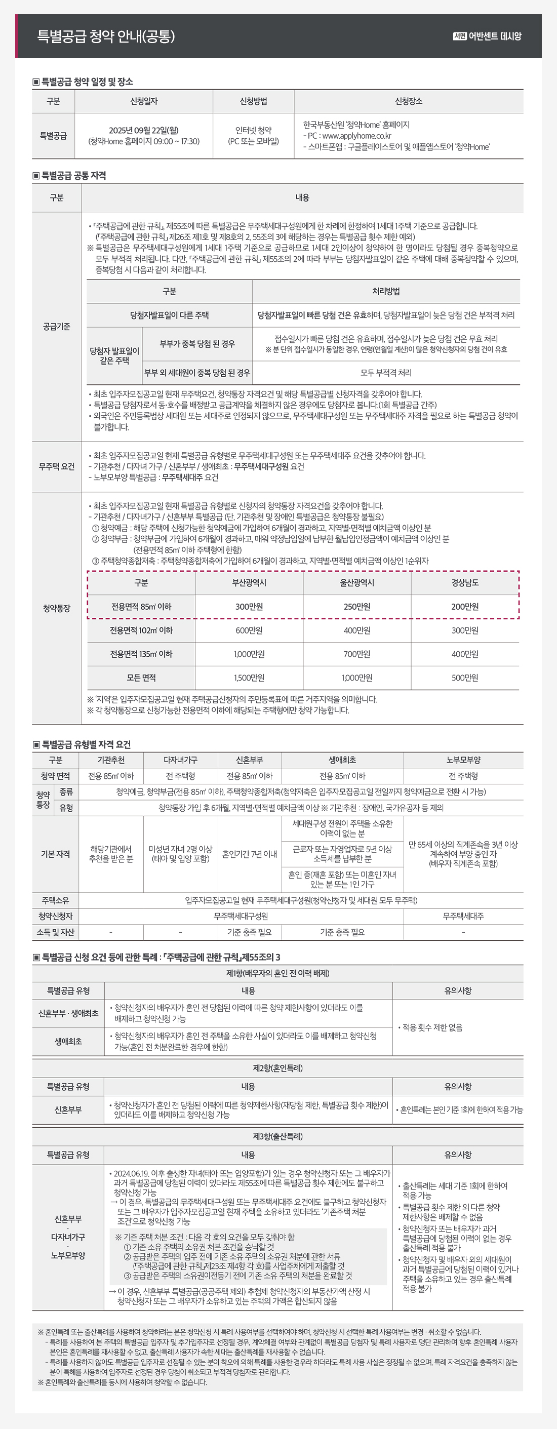 특별공급 청약 안내