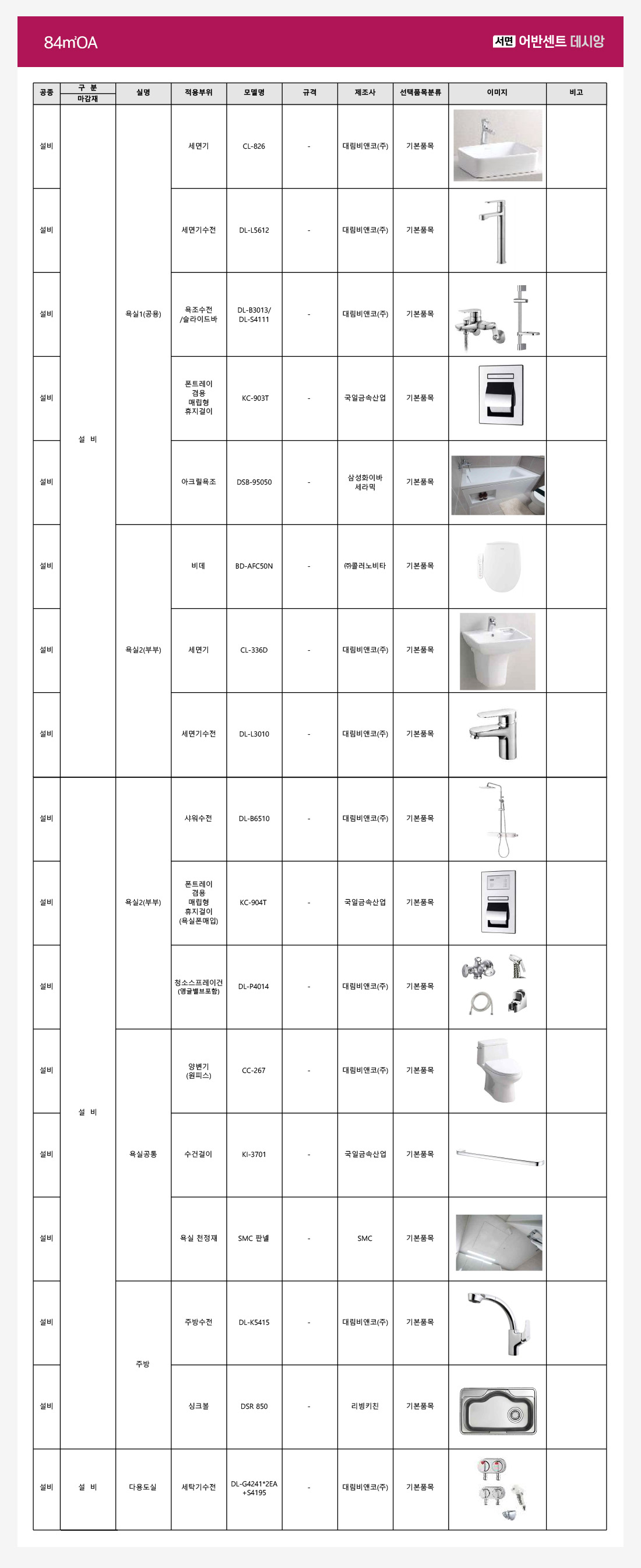 마감재 리스트는 제작과정상 오탈자가 있을 수 있으며, 자세한 사항은 견본주택에 직접 방문하셔서 상담 및 확인하시기 바랍니다.