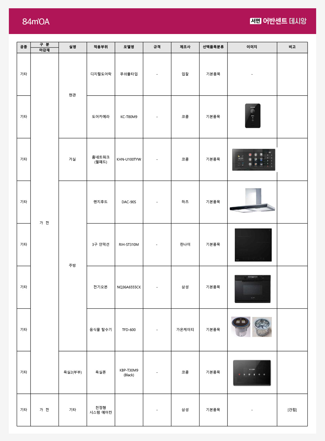 본 마감재 리스트는 인·허가 과정이나 실제 시공 시 변경될 수 있습니다.